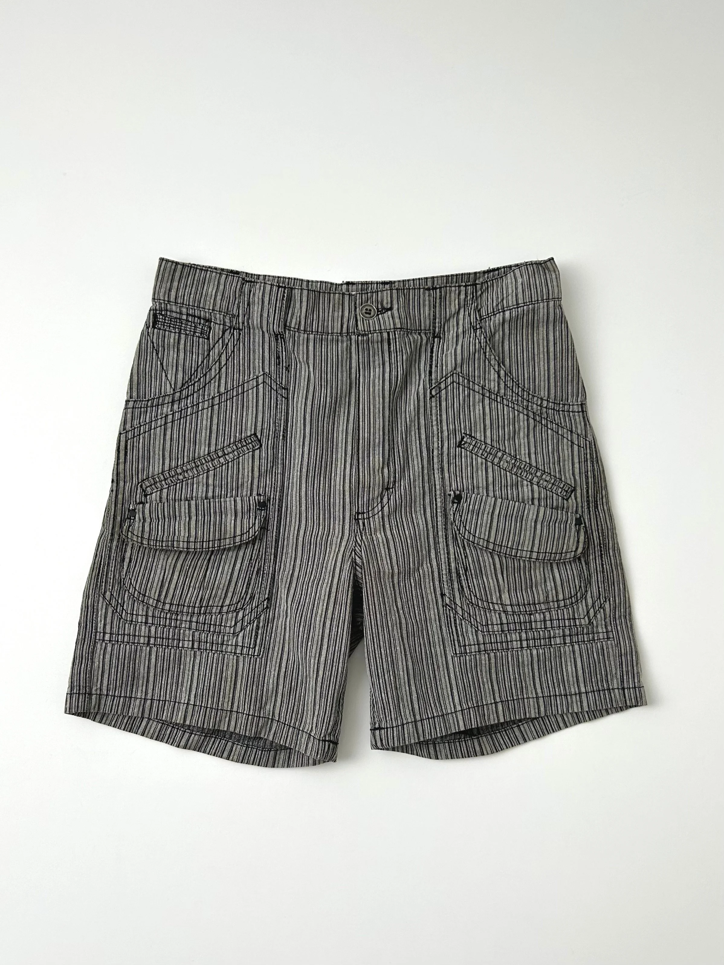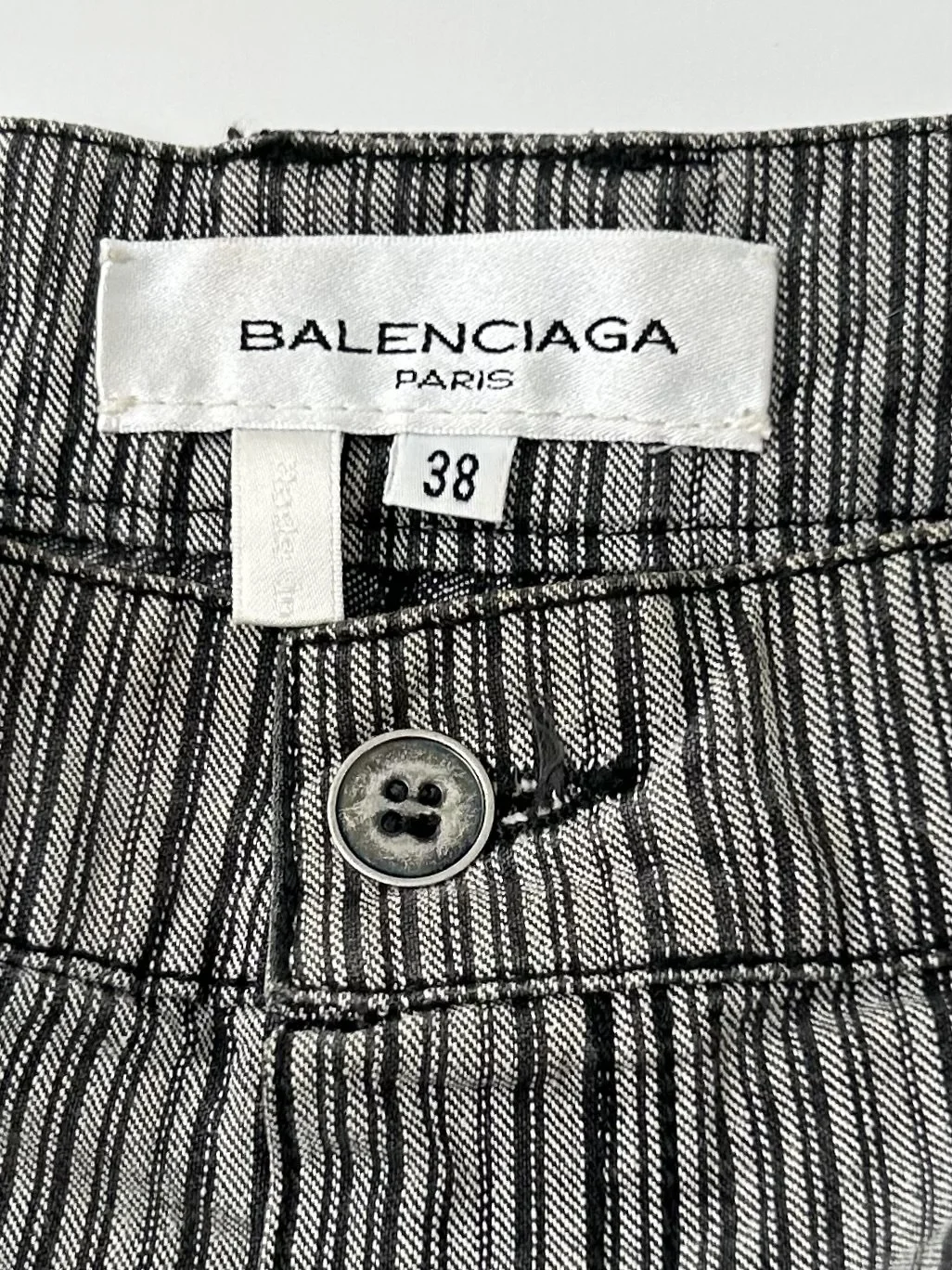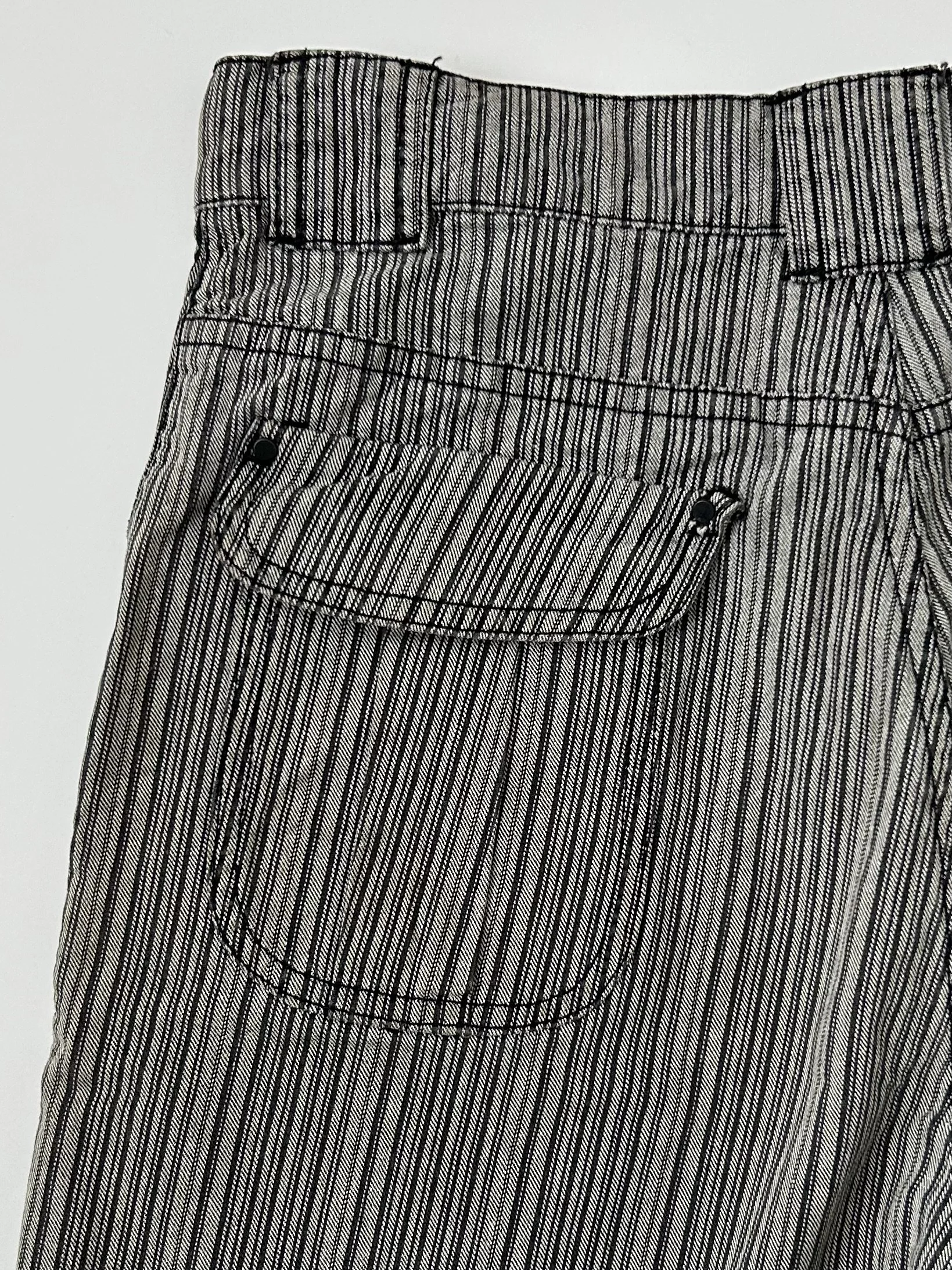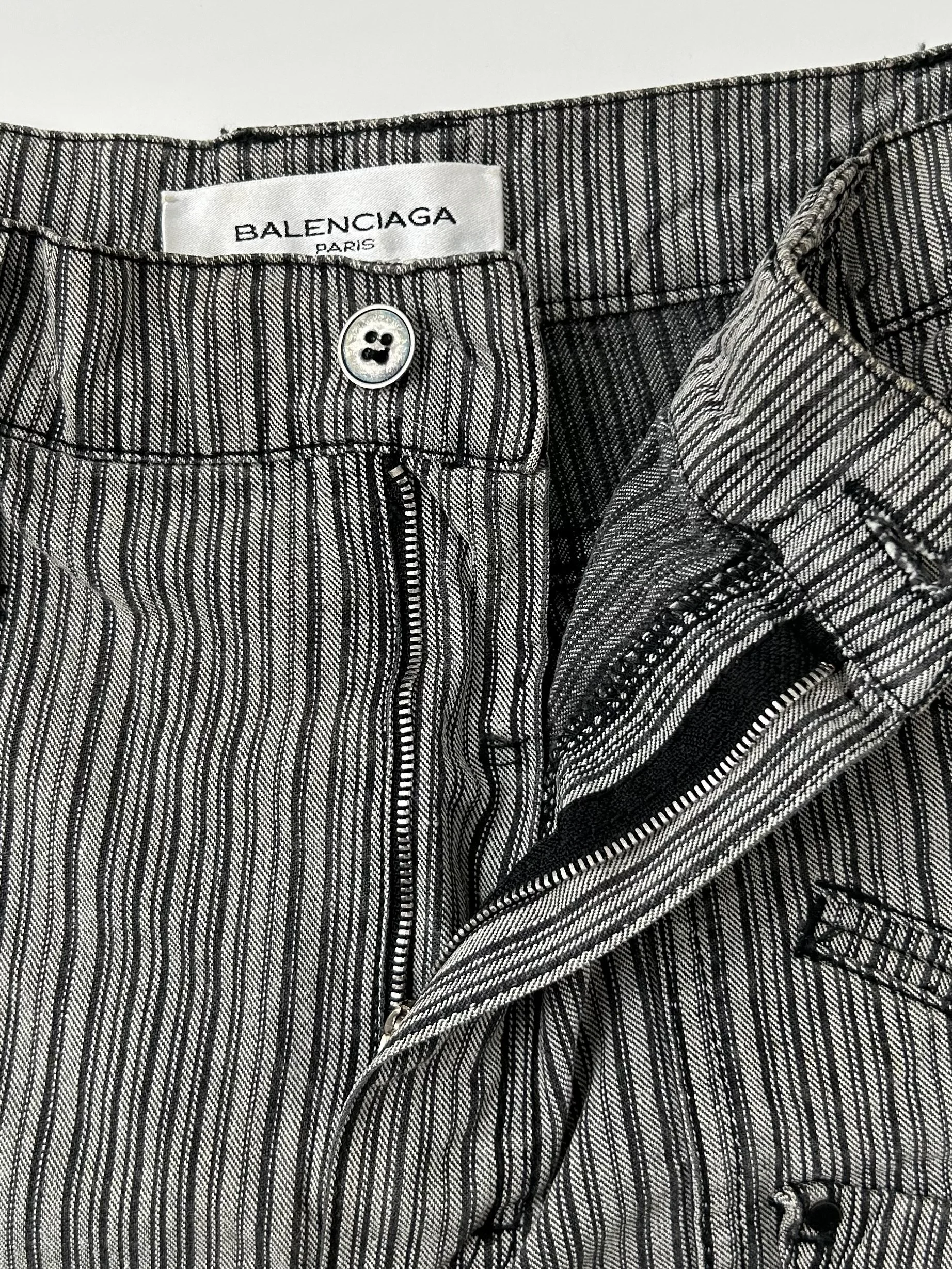 Spring 2001 Nicolas Ghesqiuère era Balenciaga grey pinstripe denim shorts.